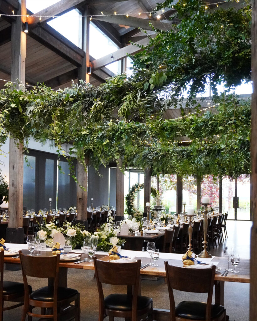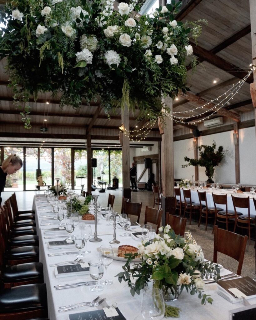 Where and when else do you and your guests get to sit under a cloud of flowers? The availability of hanging points at Stones of the Yarra Valley is definitely something that we love as a wedding florist.