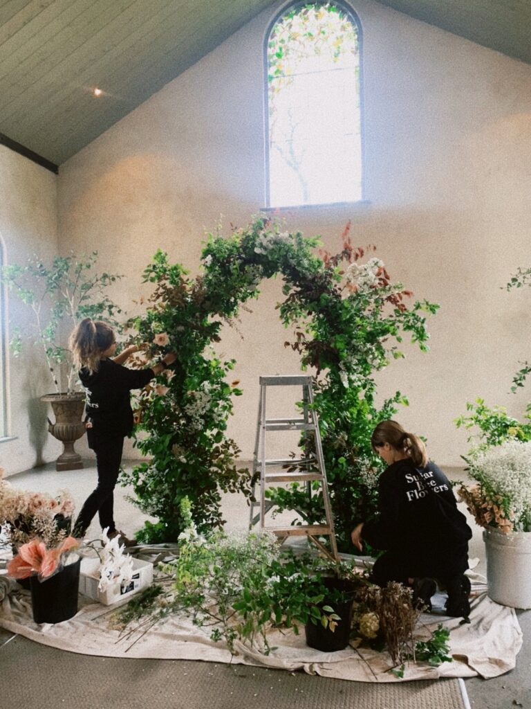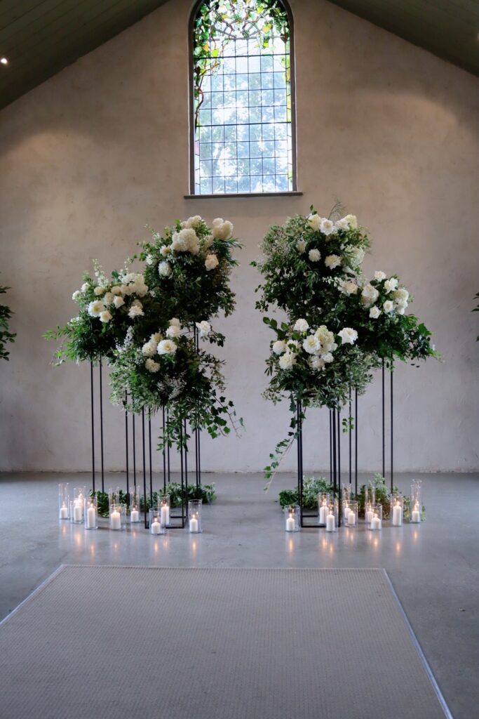 Feature ceremony backdrops have always been popular, with many couples choosing to invest in a backdrop that can then be used inside the reception space. Stones chapel is great because it has a large and open, light filled space to work with. Rest assured that we will come back to move the flowers for you, so your day runs seamlessly while you enjoy your day stress free 🥳