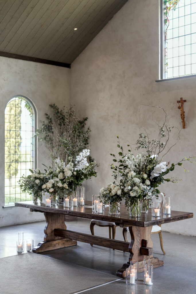 I personally also love decorating the altar table too, it’s the original and iconic look to Stones. The alter table arrangements often are transferred to the entrance table of the barn, mirroring what was in the chapel.