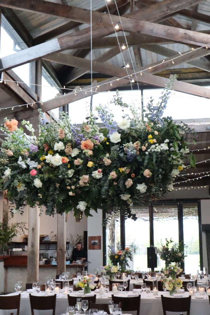 We can create a central installation to sit above the bridal table, garland installations to create an enchanted garden feel to the room over the guest tables. One thing is for certain – floral hanging installations will always make a stunning impact. They create a romantic atmosphere, set the tone for the space, and fill the air with delightful fragrance that will linger in everyone’s memories for years to come.